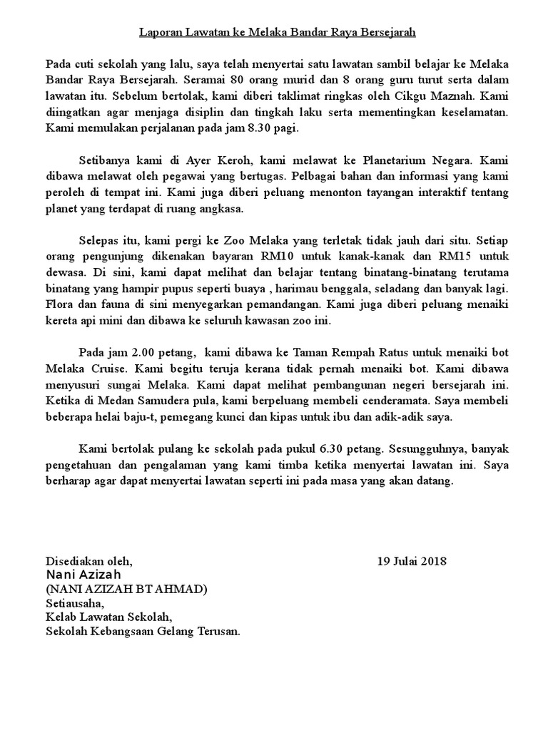 Karangan Laporan Lawatan Ke Melaka Bandar Raya Bersejarah Pdf
